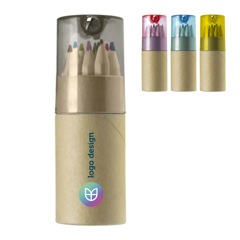 Deze eco kartonnen koker bevat 12 kleurpotloden en heeft een transparant deksel. Dit deksel is tevens een puntenslijper en is verkrijgbaar in rood, geel of blauw. Een erg leuk promotieartikel wanneer er kinderen in de buurt zijn of wanneer uw relaties kinderen hebben. De kartonnen koker maakt dat dat dit een milieubewuste keuze is.
