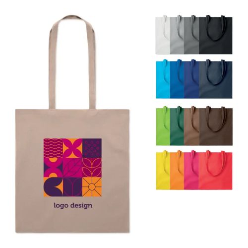 Wilt u met uw bedrijf of organisatie extra opvallen? Of een tas inzetten die past bij de kleuren van uw huisstijl? Dan is deze gekleurde katoenen tas de perfecte optie. Hij is namelijk in maar liefst 17 kleuren leverbaar. De tas is gemaakt van 140 gr./m2 katoen en is geproduceerd onder gecertificeerde standaarden. De tas heeft handige lange hengsels.