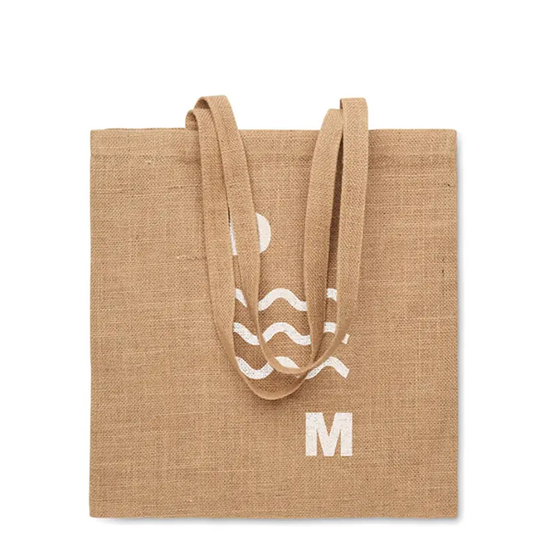 Deze jute boodschappentas met lange hengsels heeft een robuuste en natuurlijke uitstraling. De milieu-impact van jute is relatief laag in vergelijking met andere textiel: een duurzame keuze dus! De tas kan aan beiden kanten full colour bedrukt worden. Een praktisch en mooi relatiegeschenk!