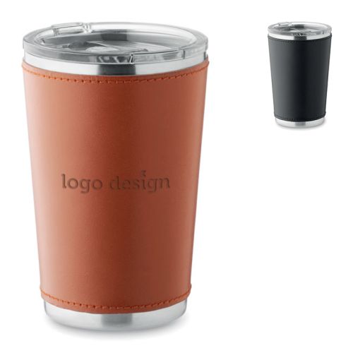 Dagelijks drinken wij in België gemiddeld 2-3 koppen koffie per persoon. En wereldwijd groeit het aantal kopjes koffie dat wordt gedronken nog steeds! Daarom is een dubbelwandige koffiebeker als relatiegeschenk absoluut een goede keuze. De beker is gemaakt van gerecycled roestvrij staal met een afneembare PU-leren hoes, verkrijgbaar in het bruin en zwart. De lekvrije schuifdeksel heeft een drinkopening, waardoor u 'm ook als reisbeker kunt gebruiken.