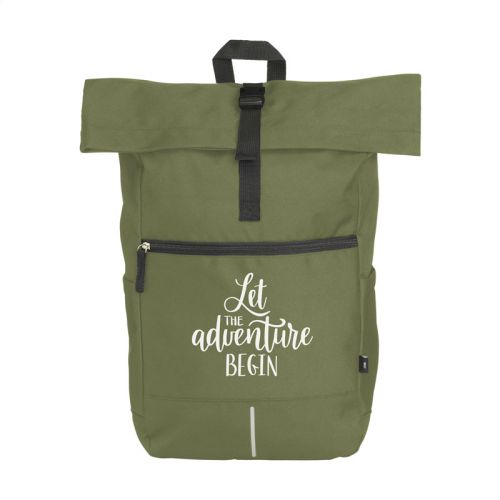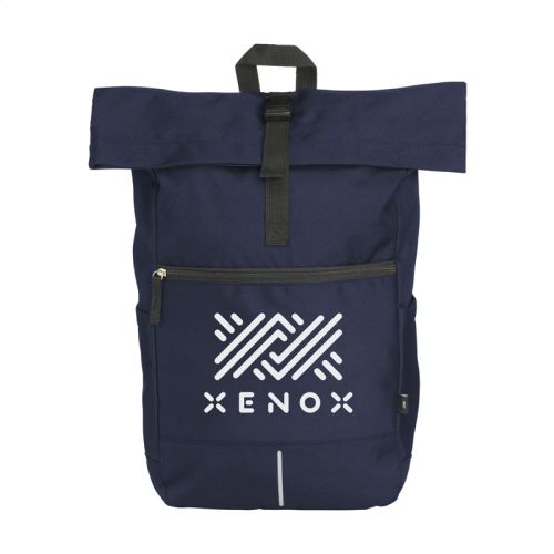 Ga op pad met deze stevige en waterafstotende rugzak gemaakt van gerecyclede PET-flessen. De rugzak heeft een groot binnenvak met speciale ruimte om je laptop (tot 15.4 inch) veilig op te bergen. De tas heeft een handige rolsluiting met kliksysteem en een inhoud van zo'n 20 liter. De tas is fijn in gebruik en heeft door de foam rugzijde en gewatteerde, verstelbare schouderriemen optimaal draagcomfort. De tas heeft ook nog eens twee zijvakken en een ritsvak aan de voorkant met reflecterend accent. Ideaal om kleine dingen in op te bergen.