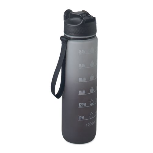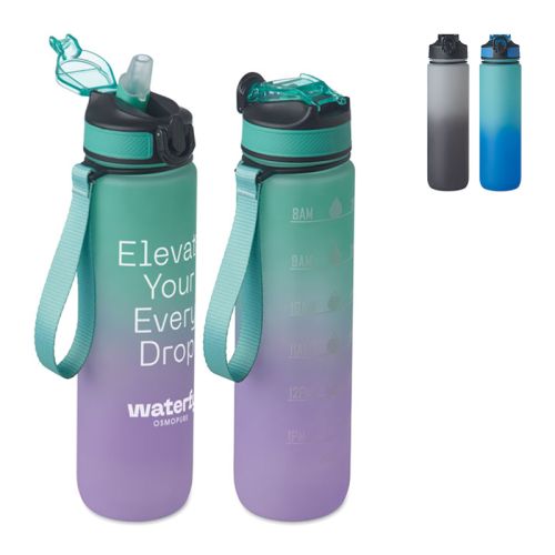 Deze sportwaterfles is het perfecte geschenk voor klanten, collega's of partners met een actieve levensstijl. De motiverende tijdsaanduiding helpt u om voldoende water te drinken gedurende de dag of het sporten. De fles is gemaakt van RPET en heeft een flip top deksel die u met één hand opent, een veiligheidsslot en een draagband. Met 1 liter inhoud is dorst verleden tijd. U hoeft bovendien niet bang te zijn dat u wat morst, de fles is namelijk lekvrij.